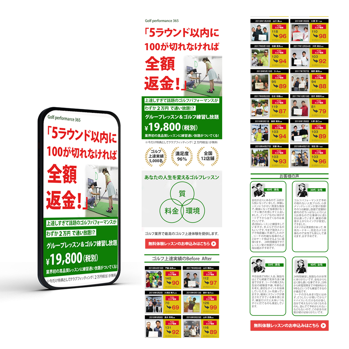 ゴルフLP 2025年12月4日 最終更新日時 : 2025年12月4日 ai.tukagoshi こちらのLPは大事な情報は赤字で強調して目を引くようにしています。そして、写真を左側に配置することで訪問者の視線を自然に誘導できるように作成しました。ボタンは赤く強調することで迷わず申し込めるように工夫しました。 \ 最新情報をチェック /